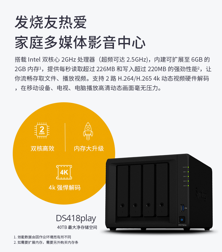 - 商品名称:群晖(Synology)DS418play 双核心 4盘位NAS网络存储服务器 (无内置硬盘 )