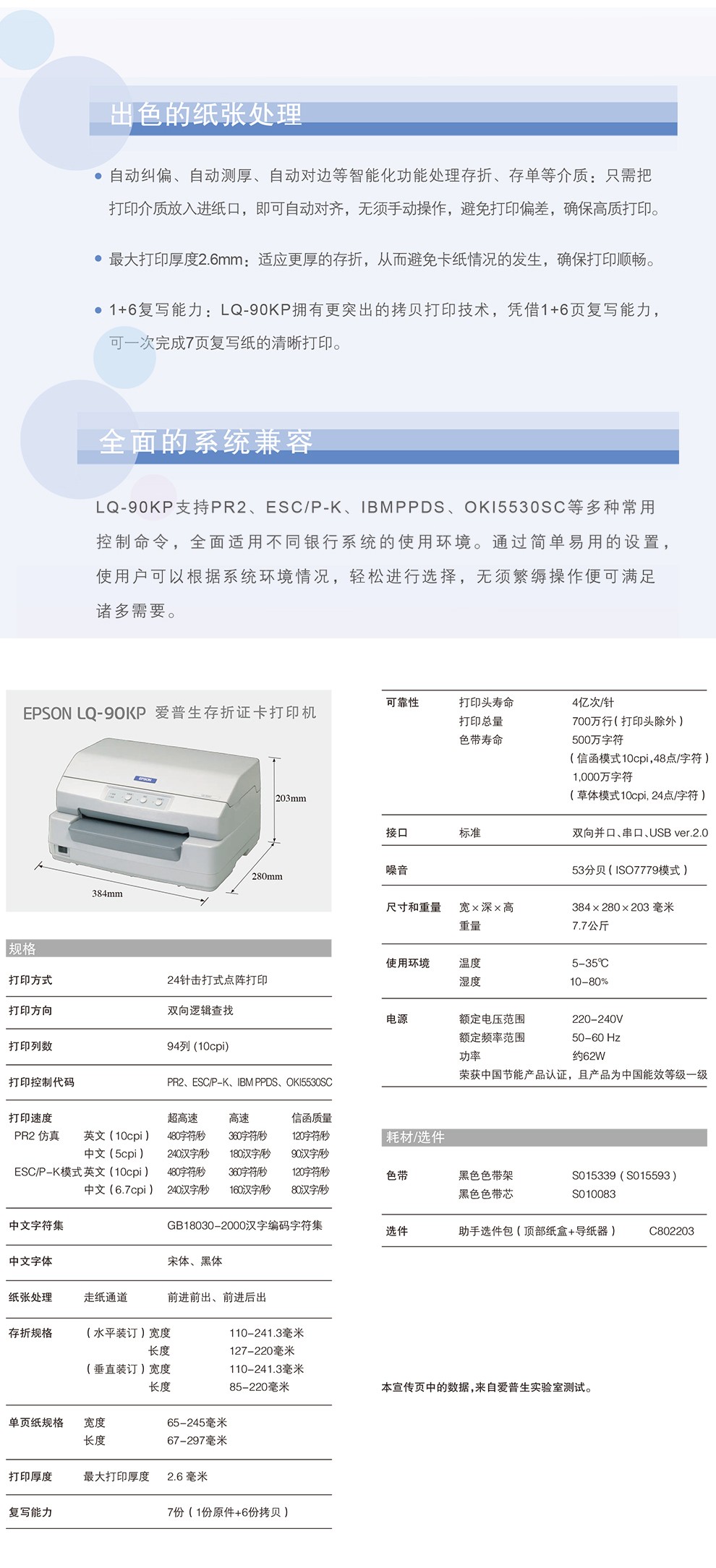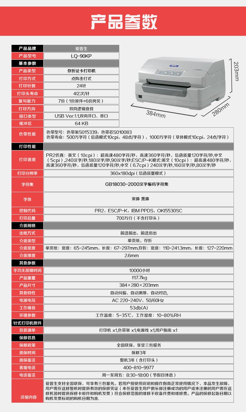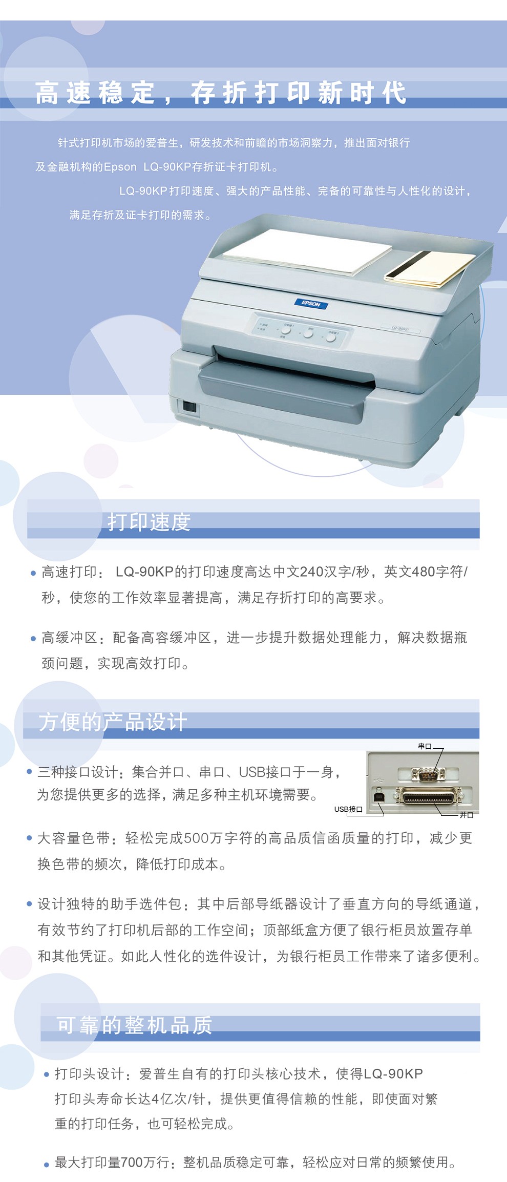商品名称:EPSON LQ-90KP存折式打印机 商品编号:095518 品牌:爱普生 上架时间:2019-05-29 商品毛重:7.700千克