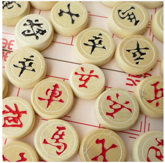 中国象棋木质套装大号木连盘 便携棋盘可折叠实木棋子 直径3.8厘米棋子
