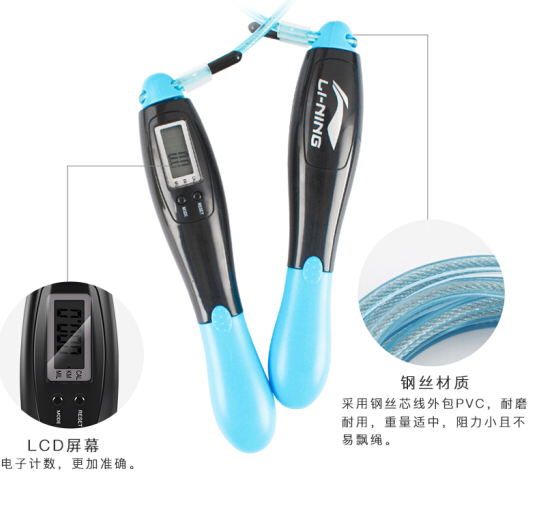李宁(LI-NING)计数跳绳减肥器材中考专用学生儿童女性成人健身运动计时钢丝跳绳