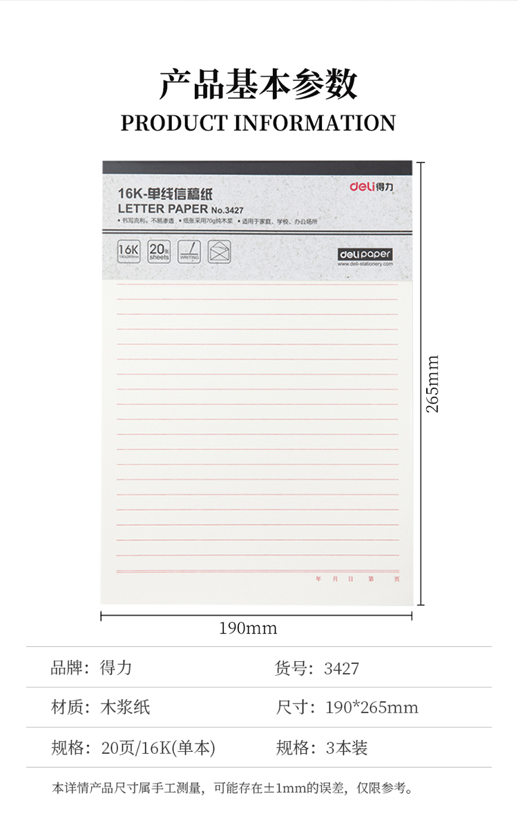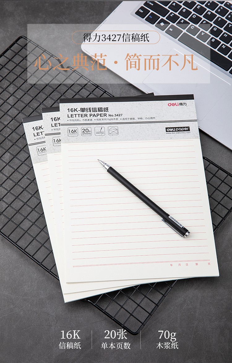 - 商品名称:得力(deli)3本16K/20张单线信稿纸笔记本子草稿纸作业本
