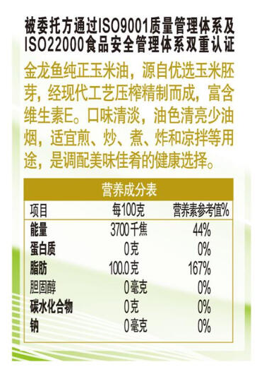 金龙鱼 食用油 非转基因 压榨 一级 纯正玉米油4L