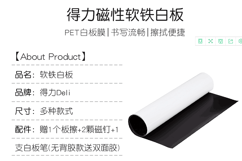 商品名称:得力(deli)涂鸦教学磁性软白板 商品编号:095572 品牌:得力(deli) 上架时间:2019-06-04 商品毛重:1.000千克