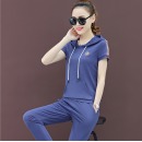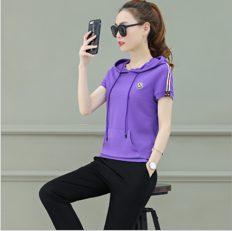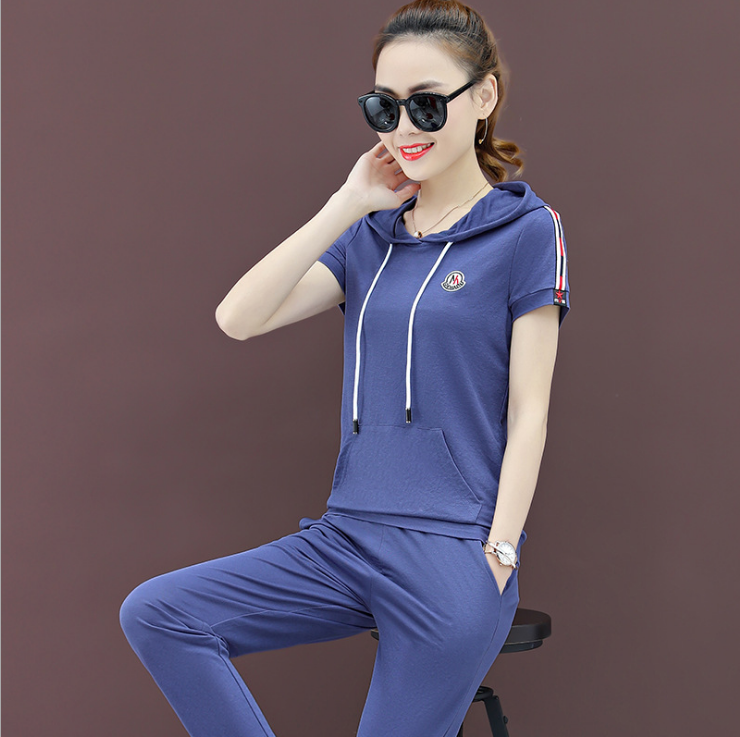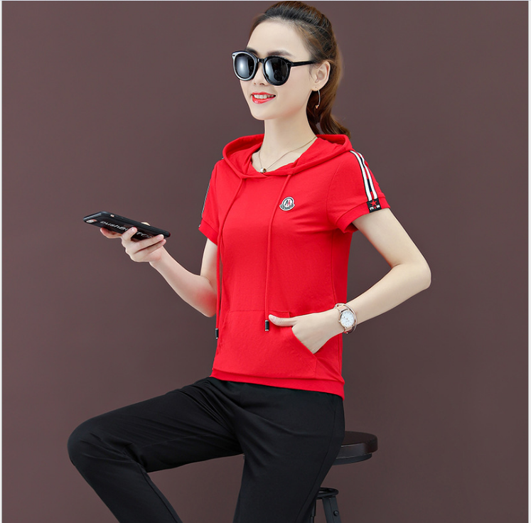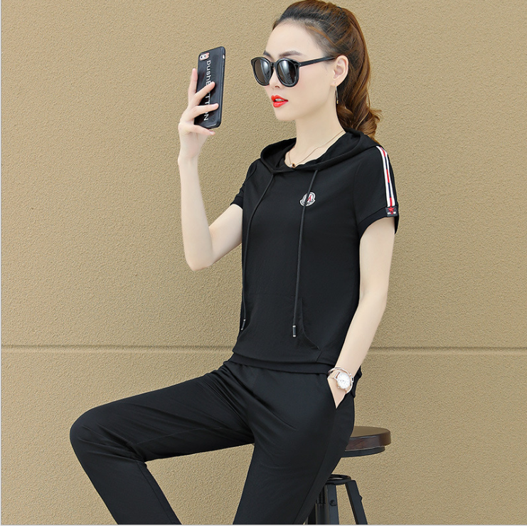 2019新款韩版时尚显瘦夏天连帽短袖裤子休闲两件套