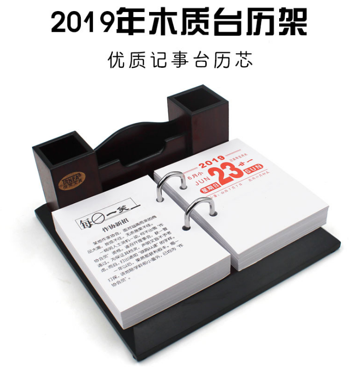 2019年木质仿红木台历架 365天小知识记事日历芯简约笔筒摆件
