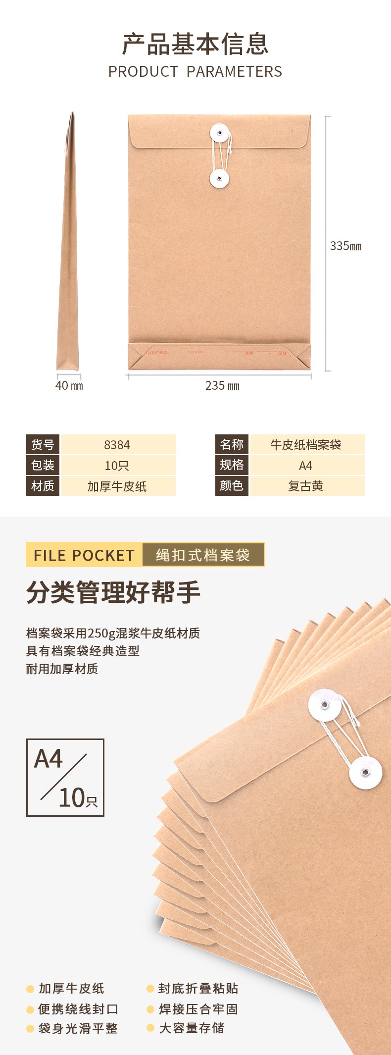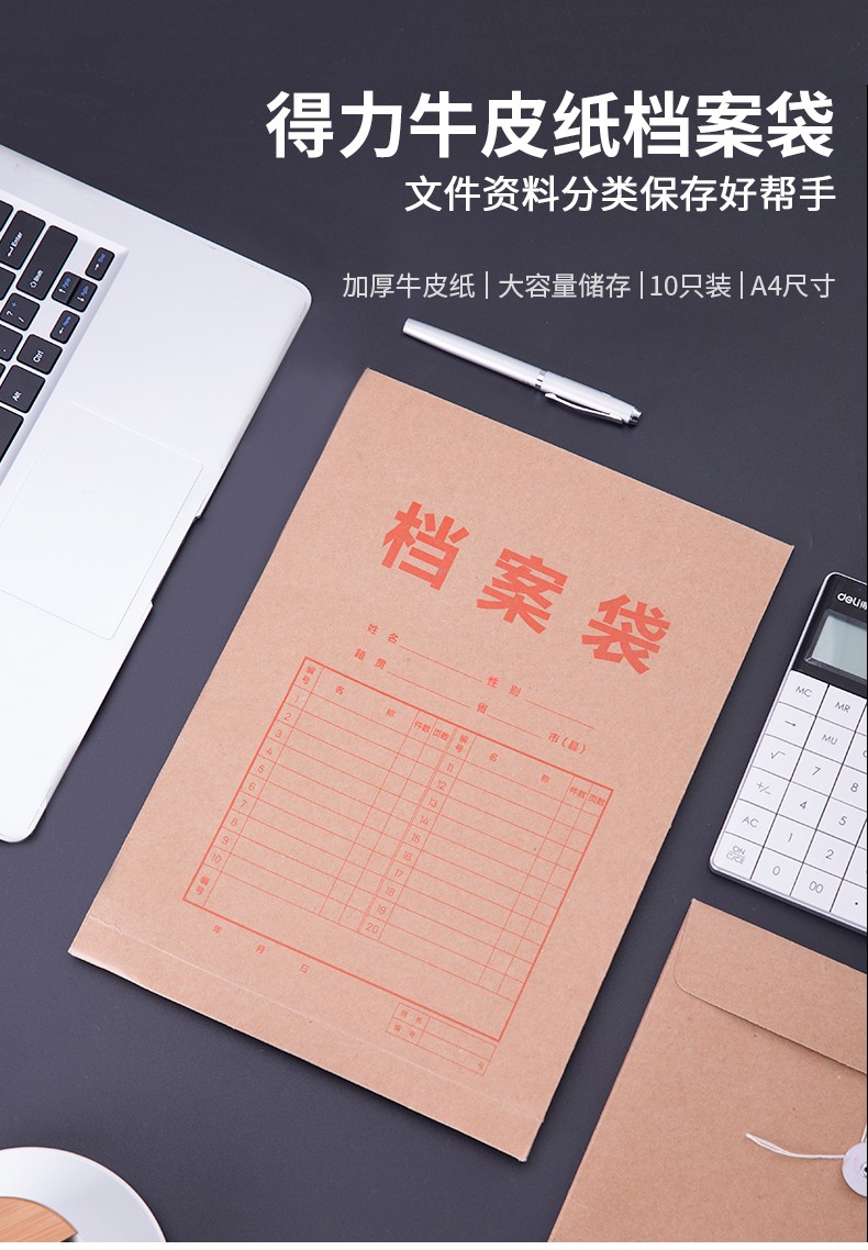 - 商品名称:得力(deli)10只/A4 加厚牛皮纸档案袋