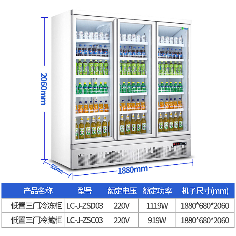 乐创(lecon)展示柜冷冻 饮料柜 下置大容积立式三门嵌入式便利店果蔬水果保鲜柜 LC-J-ZSD03