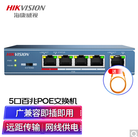 海康威视HIKVISION 5口百兆POE交换机非网管百兆延长网线传输DS-3E0105P-E