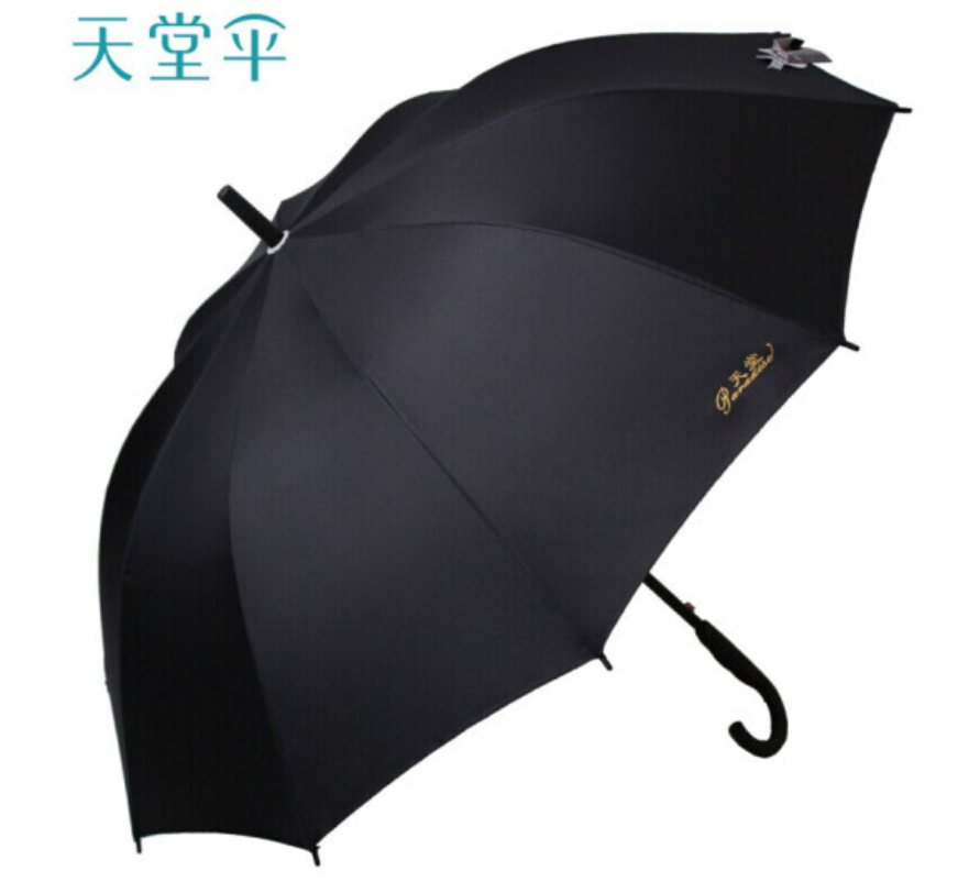 天堂伞 直杆伞自开长柄伞70cm*10骨黑胶晴雨伞加大加固2-3人两用商务伞太阳伞遮阳伞 193E#升级款黑色